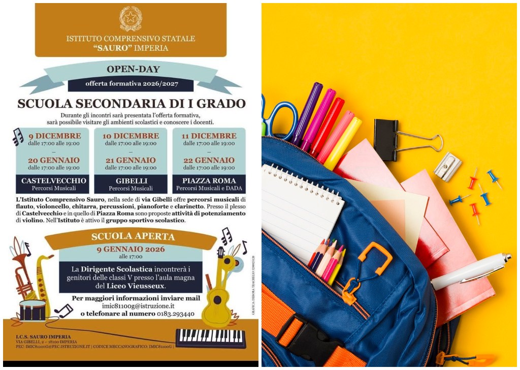 Open Day dell’I.C. “N. Sauro” di Imperia: dal 9 al 17 dicembre la melodia del futuro inizia qui 6 Dicembre 2025
