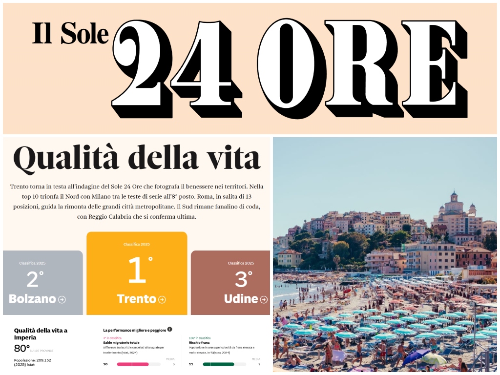 Qualità della vita: per il Sole 24 Ore Imperia scende all’80° posto. Sprofonda il clima, cresce la cultura ma trainata dai ristoranti / Lo studio 1 Dicembre 2025
