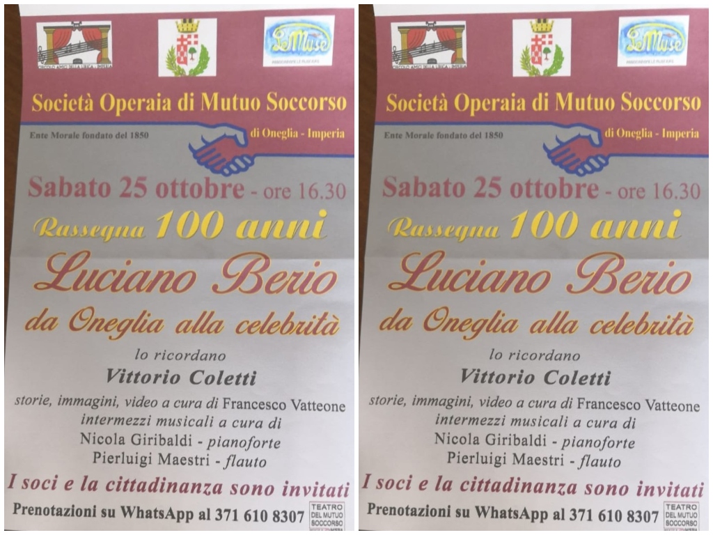 Imperia: oggi pomeriggio alla Società Operaia di via Santa Lucia il ricordo di Luciano Berio 25 Ottobre 2025