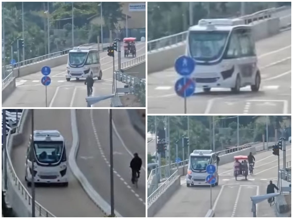 Imperia: navetta senza conducente, l’incrocio sulla ciclabile fa discutere. Cambio di corsia in mezzo a pedoni e ciclisti /Video 23 Ottobre 2025