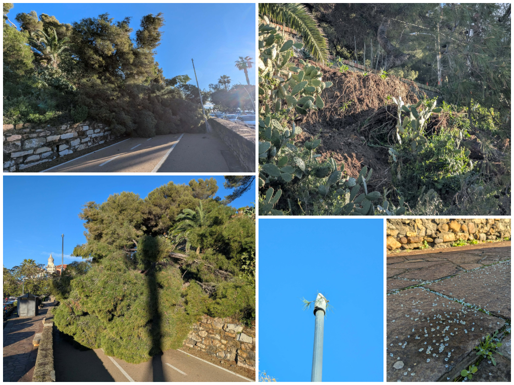 Maltempo a Imperia: un grosso Pino crolla sulla pista ciclabile. Divelto un palo della luce /Foto e Video 6 Febbraio 2026