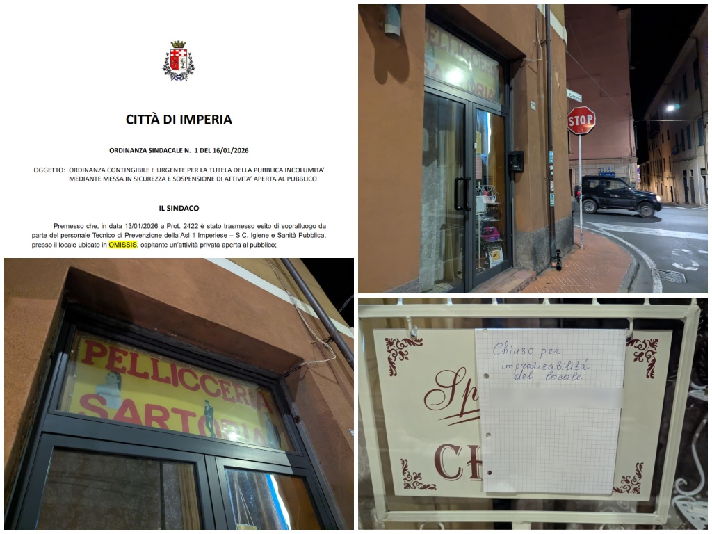 Imperia: infiltrazioni d’acqua e rischio elettrico, chiuso un locale artigianale in via Cascione /L’Ordinanza 17 Gennaio 2026