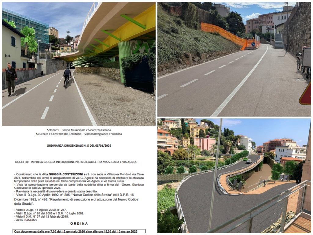 Imperia: pista ciclabile chiusa tra via Agnesi e via Santa Lucia per due mesi. Dal 12 gennaio proseguono i lavori del viadotto 7 Gennaio 2026
